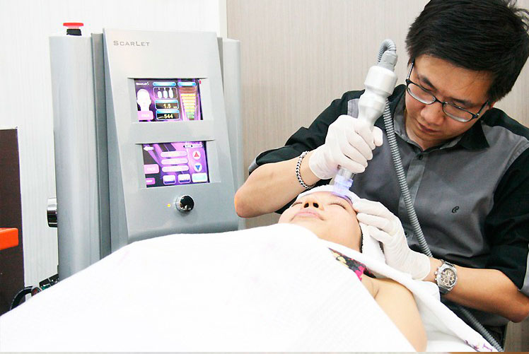 El procedimiento de la terapia se realiza con radiofrecuencia fraccional utilizando microagujas ( MRF ).